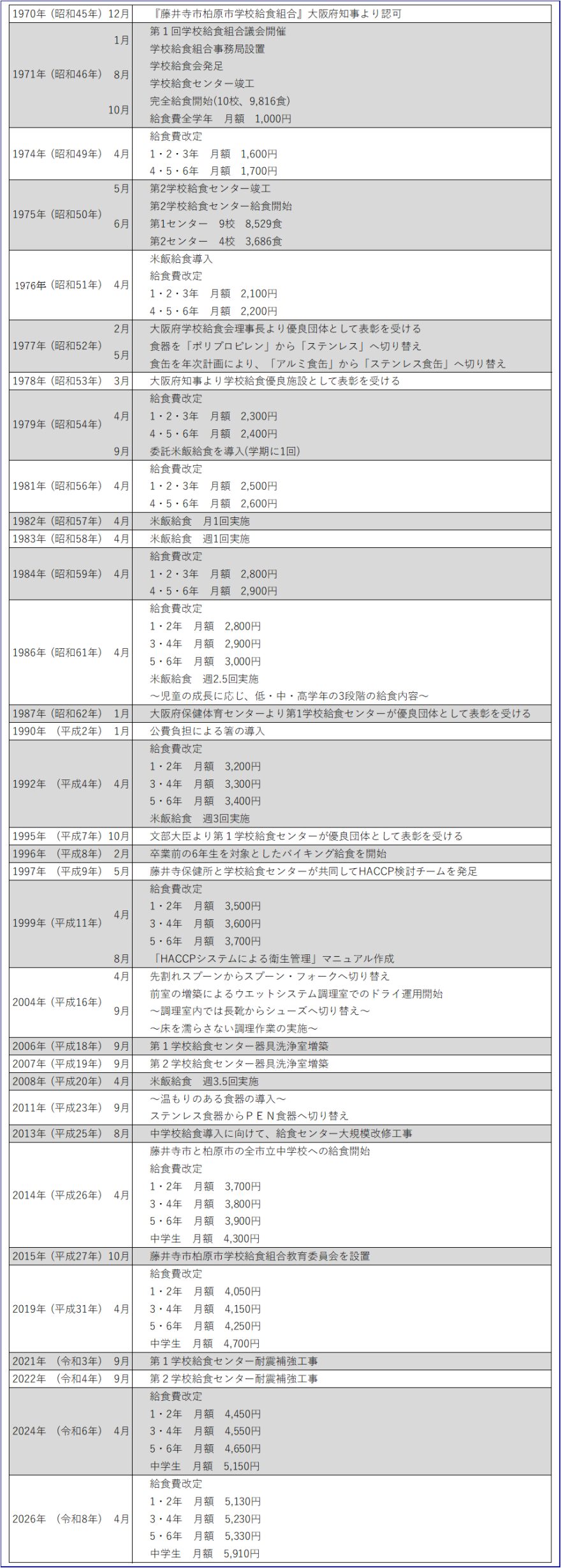 平成23年度からは、食育・食環境改善の一環として、昭和52年より使用して