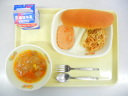 コッペパン やさいたっぷりスープ 米粉のチキンナゲット ポークチャップ 牛乳 |