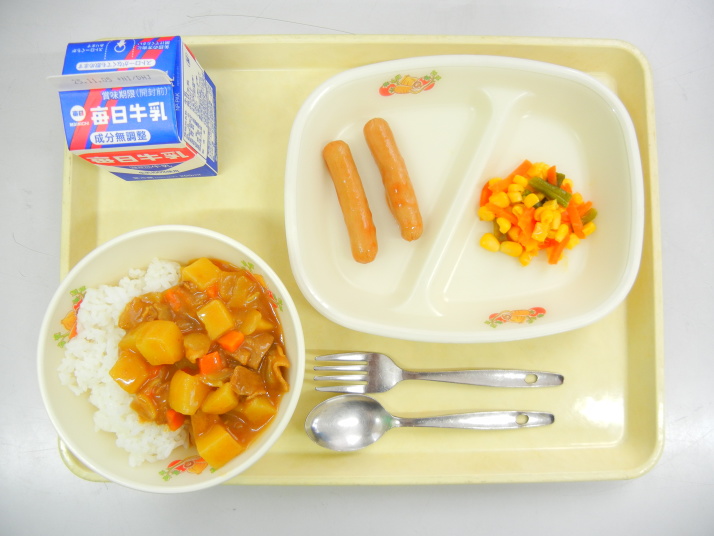 | ご飯 ポークカレー チキンウインナー ベジタブルソテー 牛乳 |