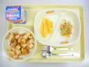ご飯 鶏肉と葛切りの煮物 チキンボールの甘辛あん きゅうりと わかめの酢の物 牛乳 |