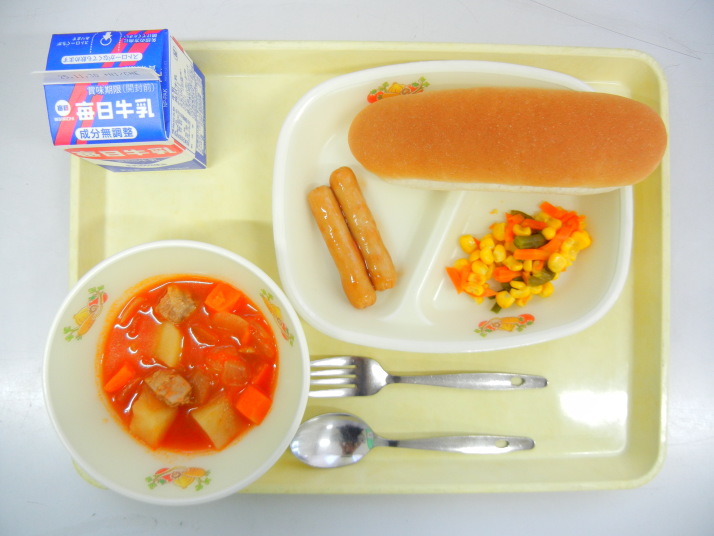 コッペパン トマト煮 チキンウインナー ベジタブルソテー 牛乳 |