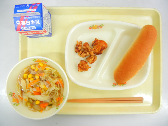 ベビーコッペ 五目ラーメン ラーメン(めん) 鶏肉のから揚げ 牛乳 |