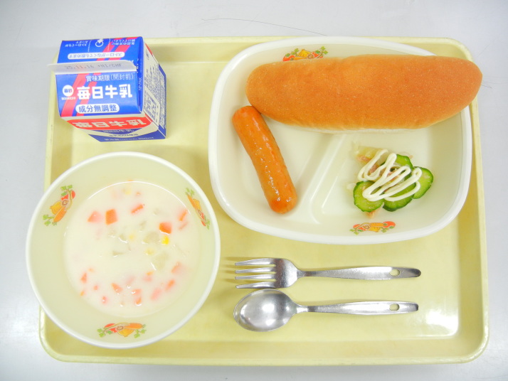 コッペパン 猫の大好きな ポテト・スープ フランクフルト ツナサラダ 牛乳 |