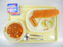 コッペパン 米粉のポークシチュー チキンウインナー フレンチサラダ 牛乳 |
