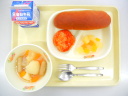 アップルコッペ 春キャベツのスープ チキンフランクフルト チリコンカン 牛乳 |